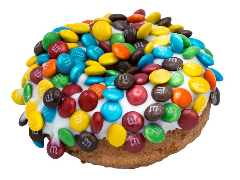 plain cake doughnut with vanilla frosting and mini M&M's® (560 cal.)