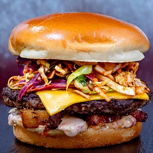 $15.99Angus Beef & Vegetable Patty, Marinated Pork Belly, American Cheese, Asian-inspired Slaw and Sambal Sweet Mayo on a Toasted Brioche Bun, served with a choice of Cuties® Mandarin Oranges or French Fries